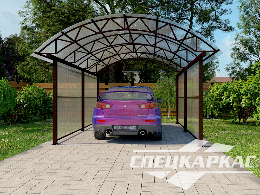 Изготовление любых навесов из поликарбоната на заказ. 350 базовых проектов, по желанию — изменение размеров и материалов. Гарантия до 10 лет. Для участков, расположенных в пределах 20 км от Москвы — бесплатная доставка и монтаж.