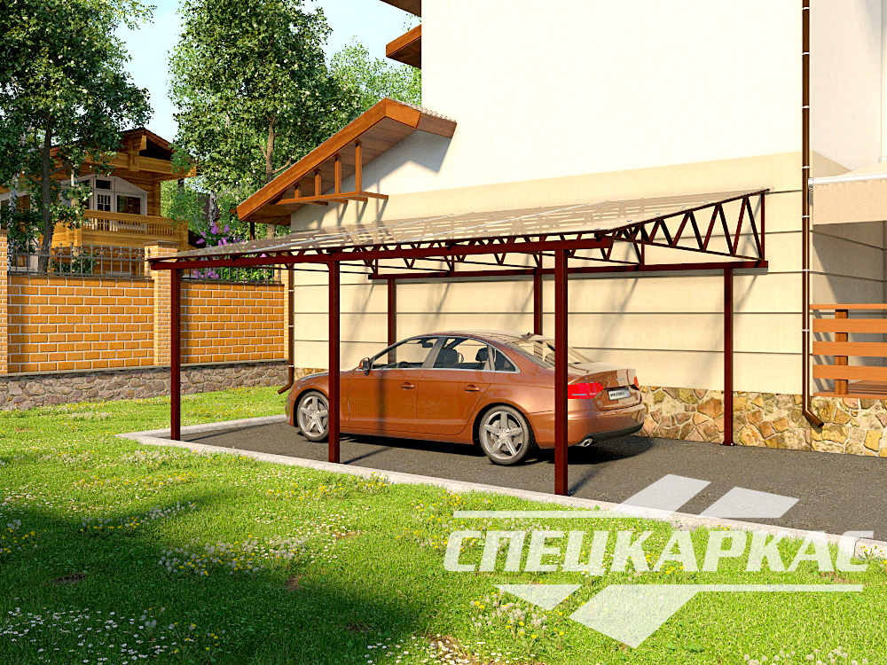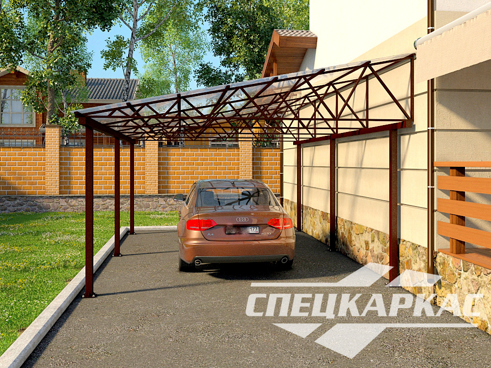 Оригинальное и «воздушное» решение в дизайне навеса для автомобиля «Скал» придется по душе автовладельцам, ценящим не только защиту, но и солидность.