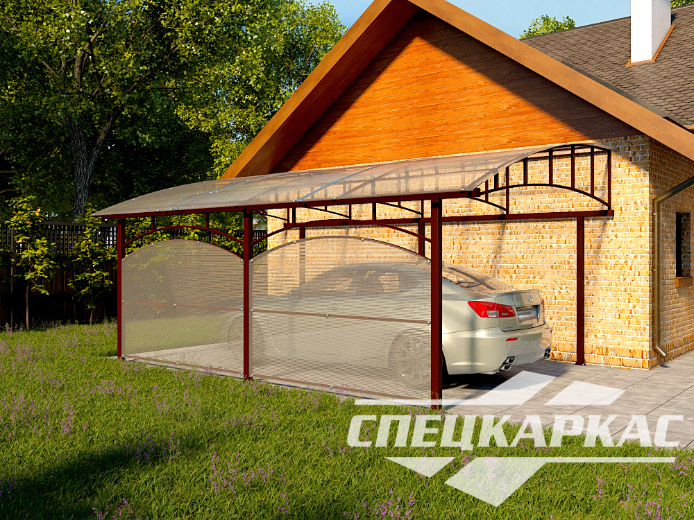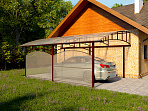 • Навес может комплектоваться следующими вариантами кровли: сотовый поликарбонат, монолитный поликарбонат,  профнастил, металлочерепица, мягкая кровля.